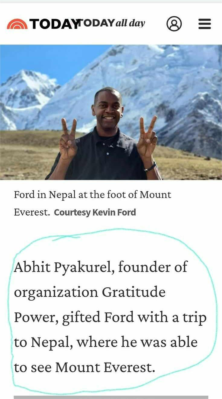Mount Everest.Standing on the mountain with tears in his eyes, he said:“My life will never be the same again.”That moment became a story featured on national television.Today, the Gratitude Project is inviting the world to create the next story.(See the proof below.)